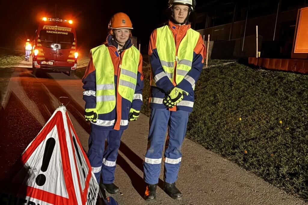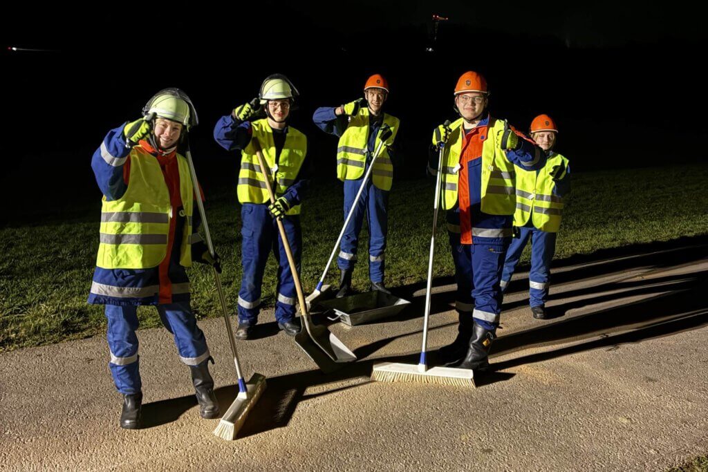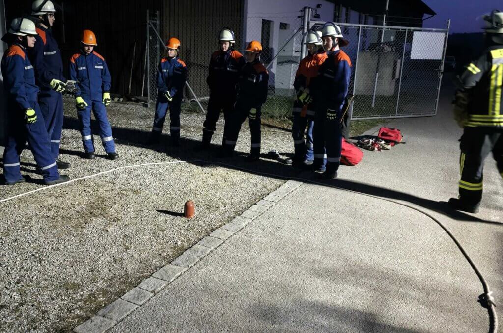 Am Abend wurden die Jugendlichen erneut gefordert: Zunächst musste eine Ölspur auf einer Straße beseitigt werden, bevor ein weiterer Einsatz anstand. Ein besonderes Highlight war dabei die Übung „Vermisste Person im Wasser“, die im Tachertinger Schwimmbad stattfinden konnte. Dort durften die Jugendlichen Schwimmwesten und spezielle Anzüge für Einsätze im Wasser testen. Möglich gemacht wurde diese Übung unter anderem durch die Unterstützung von Führungskraft Martin Wöcherl sowie durch die kooperative Unterstützung von Bürgermeister Werner Disterer.